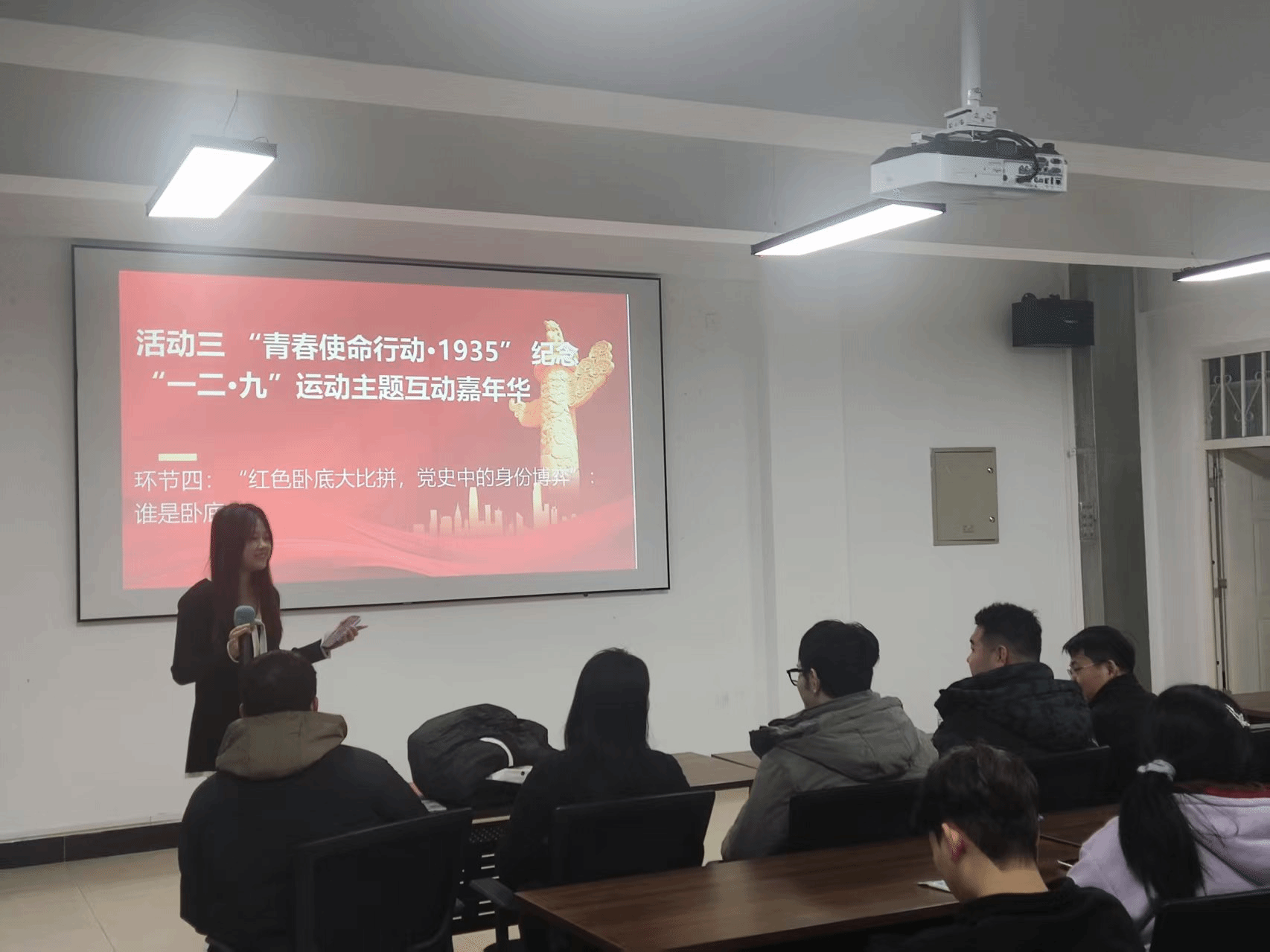 为进一步增强活动的互动性、趣味性与教育性,我院于12月6日开展“青春使命行动·1935”主题互动嘉年华。该活动设置“铭记一二九,传承爱国魂”知识竞答、“青春回响,红歌嘹亮”开门大吉、“红色电波”摩尔斯密码破译、“红色卧底大比拼”推理游戏四个环节。现场气氛热烈,同学们在协作中学习党史,在竞赛中巩固知识,在游戏中感悟精神,实现了爱国主义教育的寓教于乐、入脑入心。