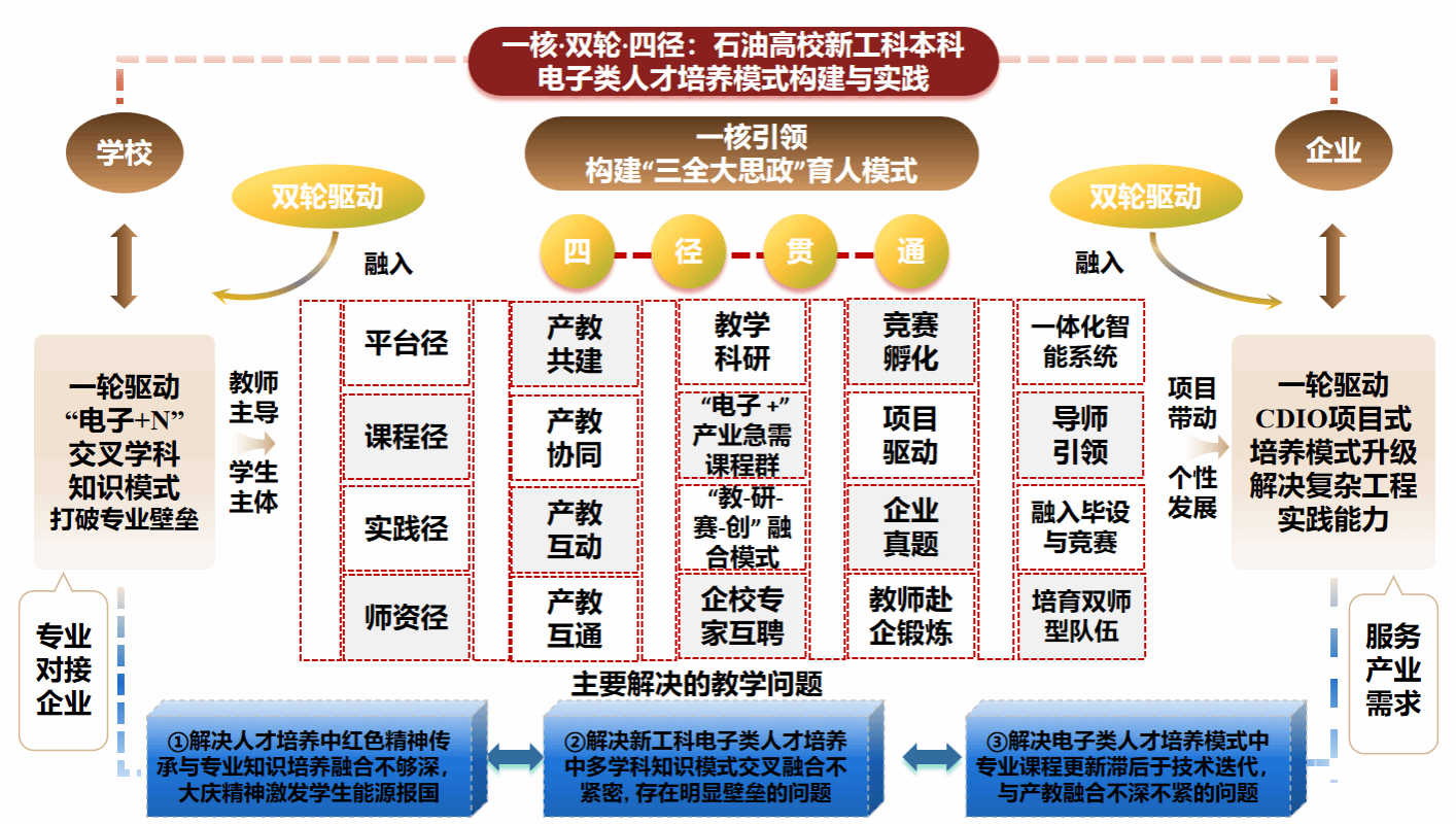 ③解决电子类人才培养模式中专业课程设置、课程内容更新滞后于技术迭代,与产教融合不深不紧的问题。